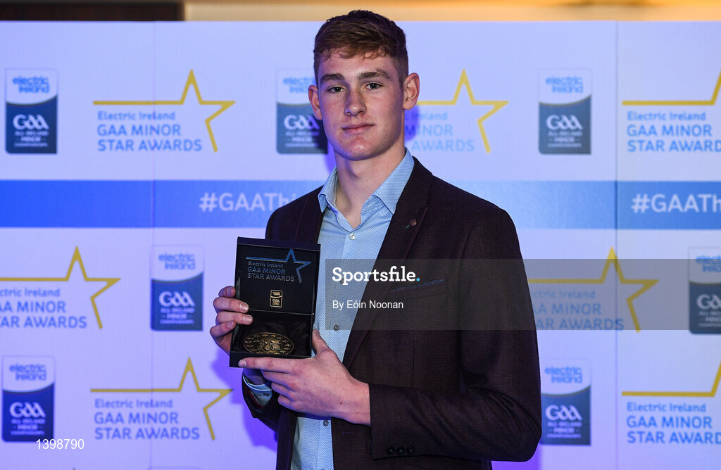 7th October 2017; Electric Ireland present Dublin's Peadar Ó Cofaigh Byrne with his 2017 Electric Ireland GAA Minor Star Award as voted for by a panel of GAA legends which includes Oisin McConville, Andy McEntee, Donal Og Cusack and Mattie Kenny. Sponsor to the GAA Minor Championships, Electric Ireland today honoured 15 minor players from, football and 15 players from hurling at the inaugural annual Electric Ireland Minor Star Awards in Croke Park #GAAThisIsMajor. Photo by Eóin Noonan/Sportsfile