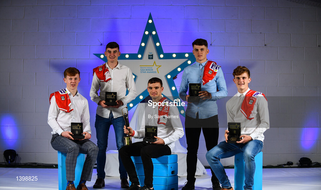7 October 2017; Electric Ireland present the Cork represenatives of Minor Hurling Team of the Year, from left, James Keating, Brian Roche, Brian Turnbull, Sean O’Leary Hayes and Daire Connery with their 2017 Electric Ireland GAA Minor Star Awards as voted for by a panel of GAA legends which includes Oisin McConville, Andy McEntee, Donal Og Cusack and Mattie Kenny. Sponsor to the GAA Minor Championships, Electric Ireland today honoured 15 minor players from, football and 15 players from hurling at the inaugural annual Electric Ireland Minor Star Awards in Croke Park #GAAThisIsMajor. Photo by Sam Barnes/Sportsfile