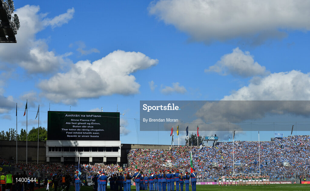 17 September 2017; The national anthem, Amhrán na bhFiann, is played by the Artane Band prior to the GAA Football All-Ireland Senior Championship Final match between Dublin and Mayo at Croke Park in Dublin. Photo by Brendan Moran/Sportsfile