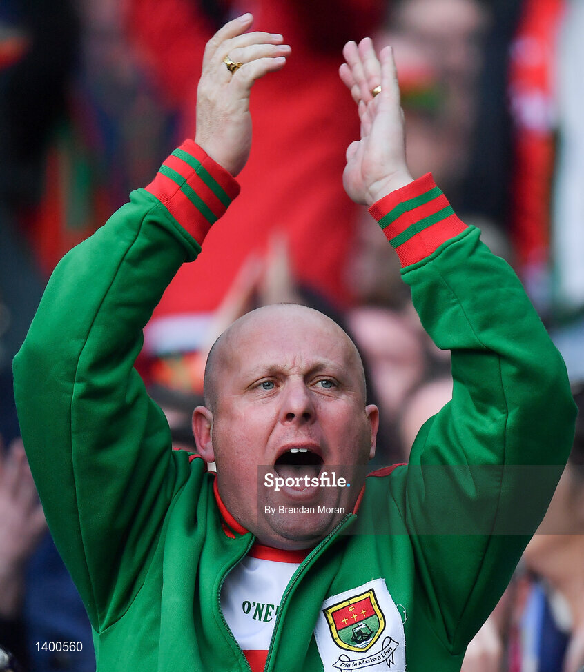 17 September 2017; A Mayo supporter cheers on their side during the GAA Football All-Ireland Senior Championship Final match between Dublin and Mayo at Croke Park in Dublin. Photo by Brendan Moran/Sportsfile