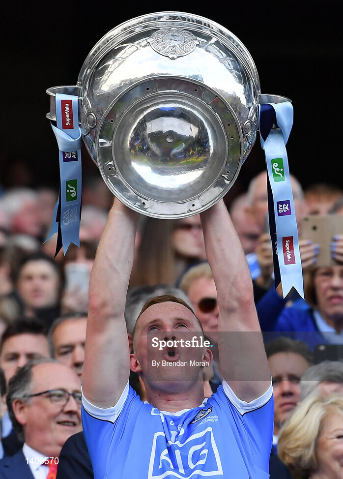 17 September 2017; Ciarán Kilkenny of Dublin lifts the Sam Maguire Cup after the GAA Football All-Ireland Senior Championship Final match between Dublin and Mayo at Croke Park in Dublin. Photo by Brendan Moran/Sportsfile