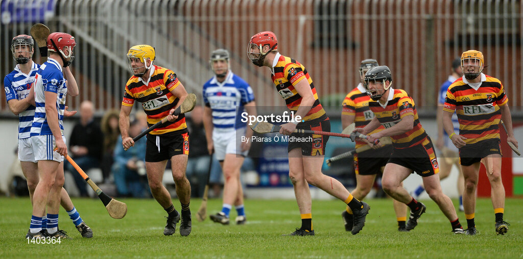 1 October 2017; Ardclough players, from left, Paudie Ryan, David Collins, Robbie Spain and Niall Delahunt celebrate winning a free during the Kildare County Senior Hurling Championship Final match between Ardclough and Naas at St Conleth's Park in Newbridge, Co. Kildare. Photo by Piaras Ó Mídheach/Sportsfile