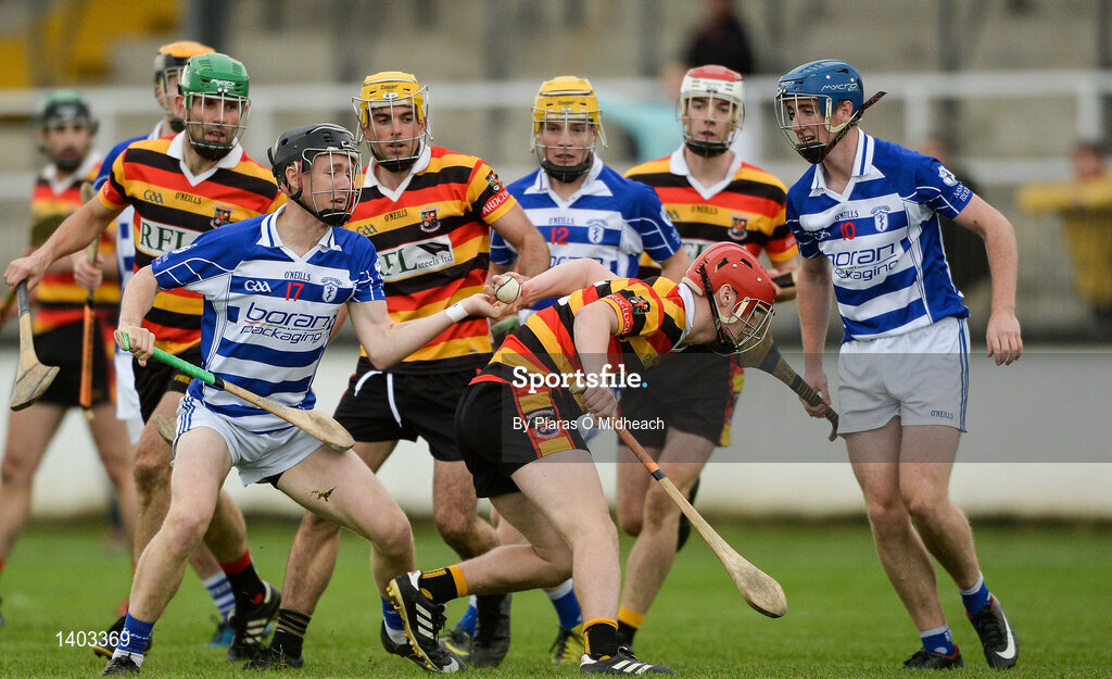 1 October 2017; Eoghan Walsh of Ardclough in action against Brian Byrne of Naas during the Kildare County Senior Hurling Championship Final match between Ardclough and Naas at St Conleth's Park in Newbridge, Co. Kildare. Photo by Piaras Ó Mídheach/Sportsfile