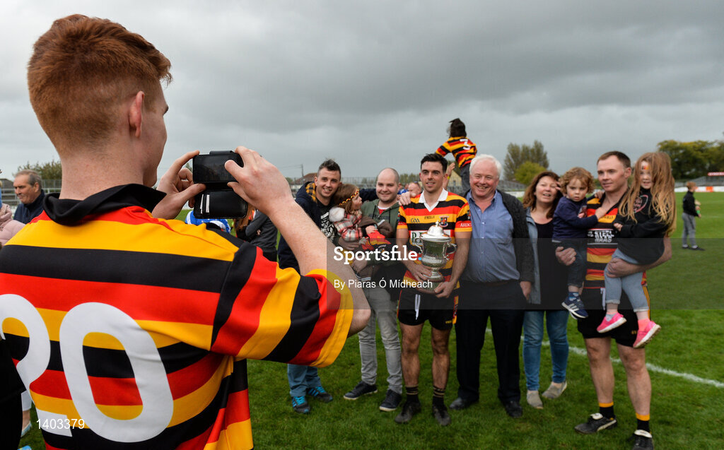 1 October 2017; Tadhg McCarthy of Ardclough takes a photograph of the Ryan Family after the Kildare County Senior Hurling Championship Final match between Ardclough and Naas at St Conleth's Park in Newbridge, Co. Kildare. Photo by Piaras Ó Mídheach/Sportsfile