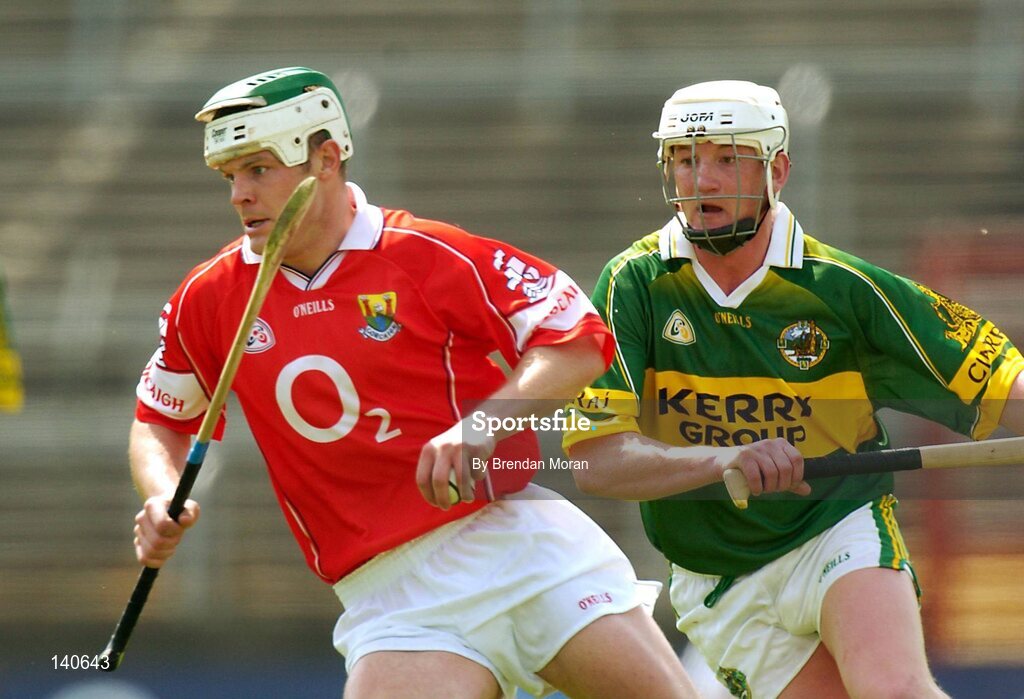 16 May 2004; Neil Ronan, Cork, in action against James McCarthy, Kerry. Guinness Munster Senior Hurling Championship, Cork v Kerry, Pairc Ui Chaoimh, Cork. Picture credit; Brendan Moran / SPORTSFILE