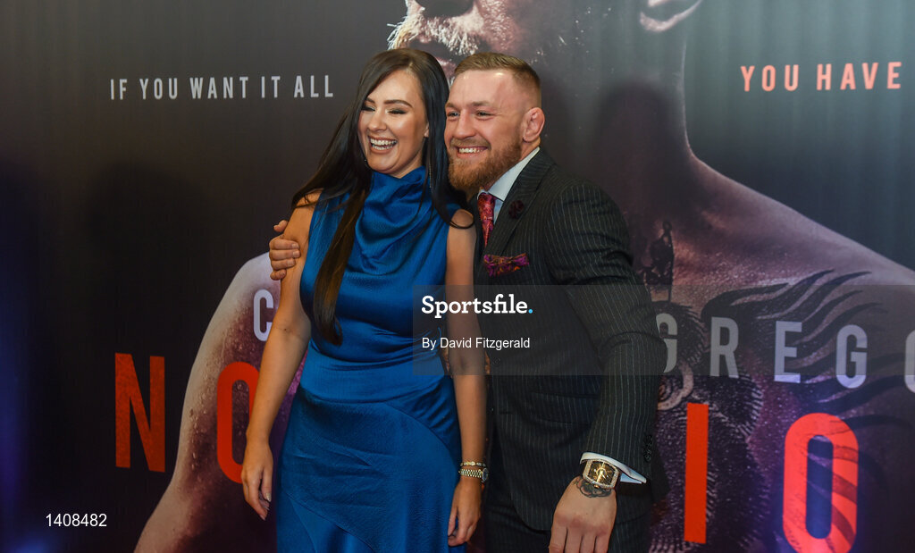 1 November 2017; Conor McGregor arrives with his partner Dee Devlin at the Conor McGregor Notorious film premiere at the Savoy Cinema in Dublin. Photo by David Fitzgerald/Sportsfile
