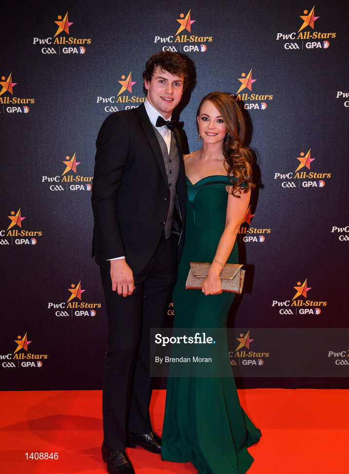 3 November 2017; Galway hurler Joseph Cooney with Rachel Byrne upon arrival at the PwC All Stars 2017 at the Convention Centre in Dublin. Photo by Brendan Moran/Sportsfile