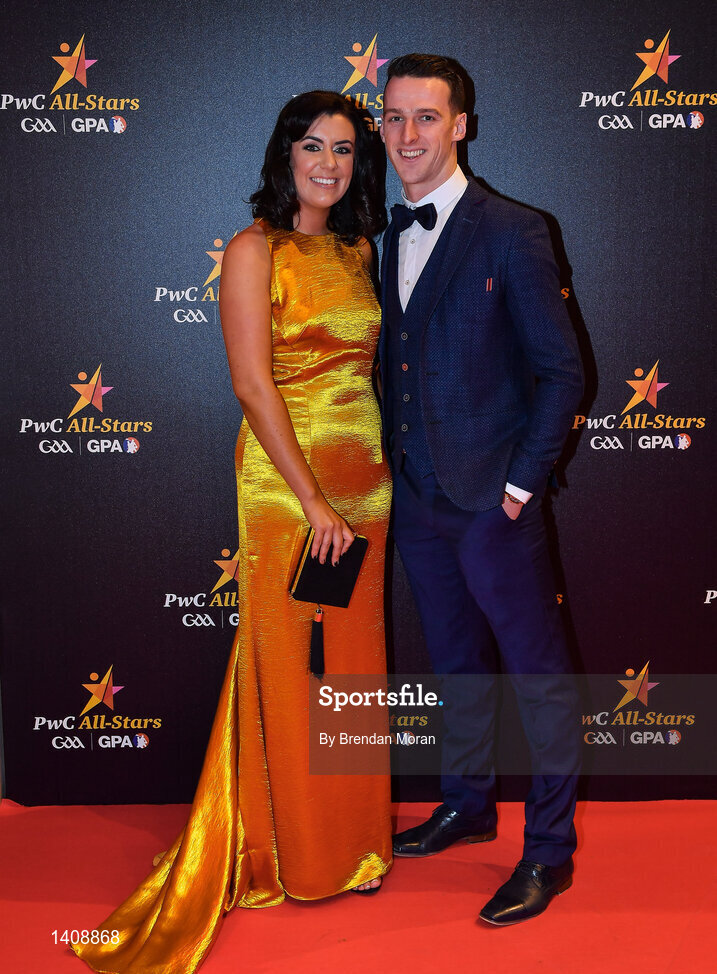 3 November 2017; Tyrone footballer Niall Morgan with Ciara Morgan upon arrival at the PwC All Stars 2017 at the Convention Centre in Dublin. Photo by Brendan Moran/Sportsfile