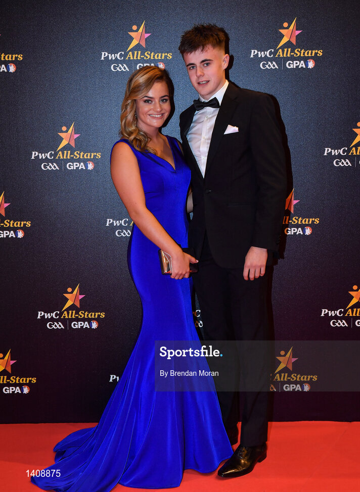 3 November 2017; Cork hurler Darragh Fitzgibbon with Cliodhna Hanley upon arrival at the PwC All Stars 2017 at the Convention Centre in Dublin. Photo by Brendan Moran/Sportsfile