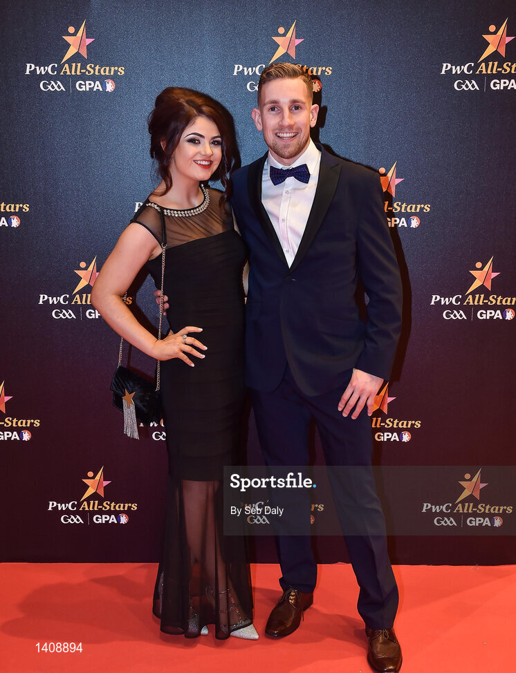 3 November 2017; Tyrone footballer Niall Sludden with Roisin McCrystal upon arrival at the PwC All Stars 2017 at the Convention Centre in Dublin. Photo by Seb Daly/Sportsfile