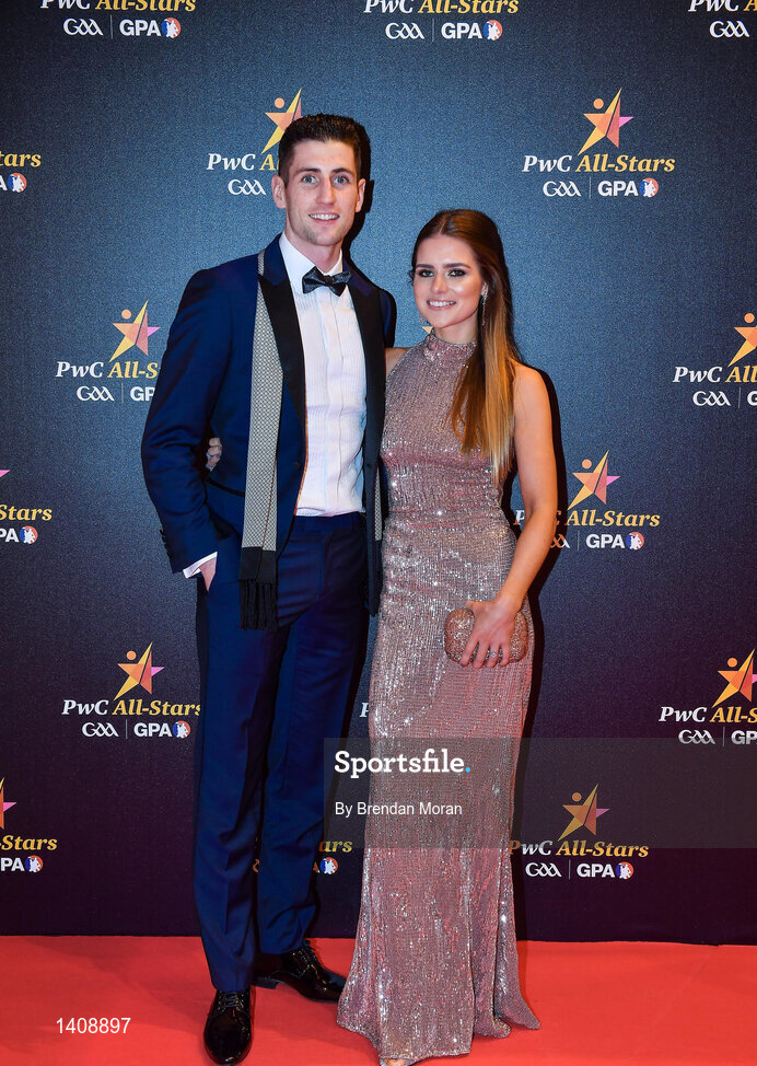 3 November 2017; Kerry footballer Paul Geaney with Siún Ní Shé upon arrival at the PwC All Stars 2017 at the Convention Centre in Dublin. Photo by Brendan Moran/Sportsfile