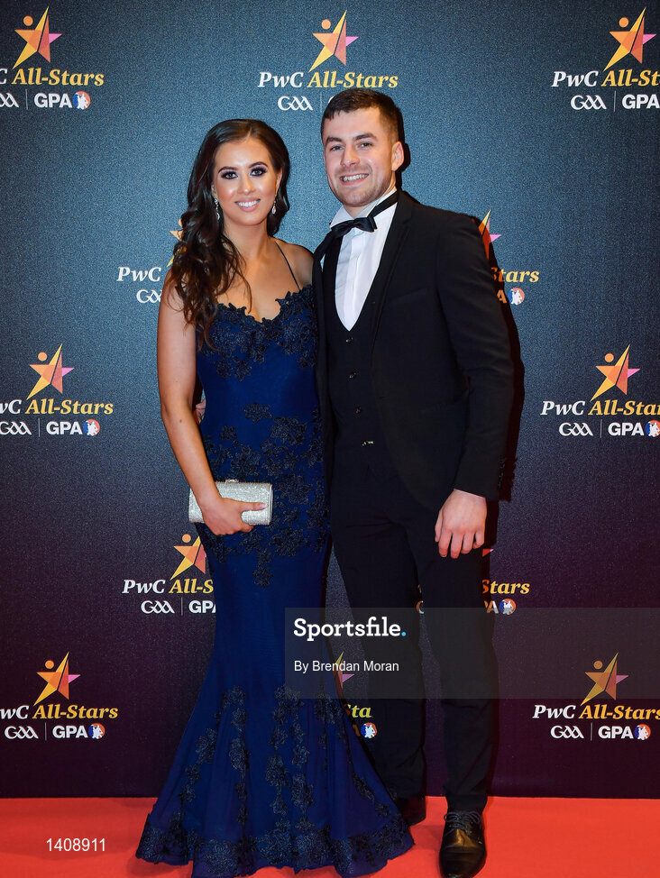 3 November 2017; Waterford hurler Jamie Barron with Mary O'Mahony upon arrival at the PwC All Stars 2017 at the Convention Centre in Dublin. Photo by Brendan Moran/Sportsfile