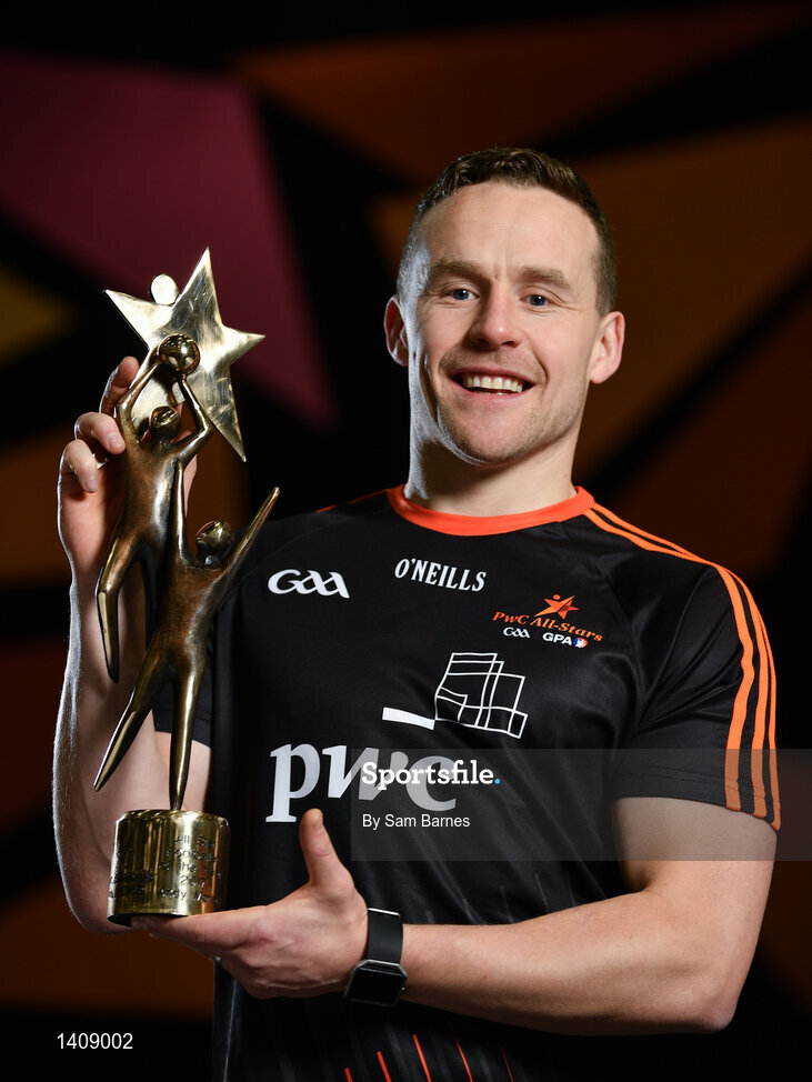 3 November 2017; Mayo Footballer Andy Moran with his PwC GAA/GPA Footballer of the Year Award at the PwC All Stars 2017 at the Convention Centre in Dublin. Photo by Sam Barnes/Sportsfile