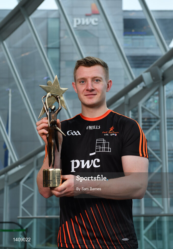 3 November 2017; Galway Hurler Joe Canning with his PwC GAA/GPA Hurler of the Year Award at the PwC All Stars 2017 at the Convention Centre in Dublin. Photo by Sam Barnes/Sportsfile