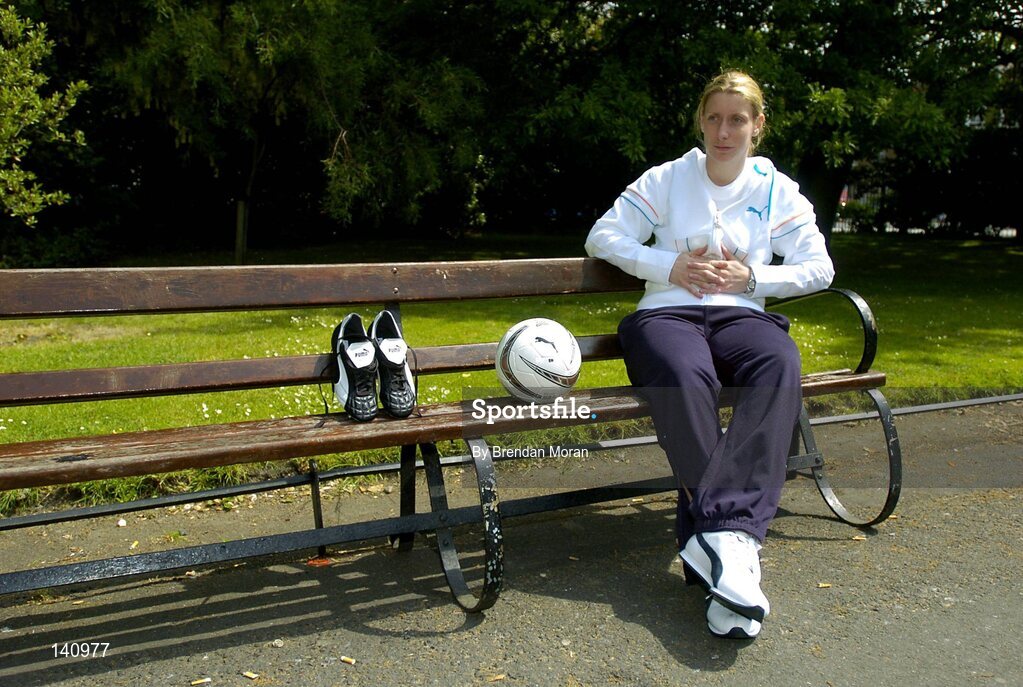 27 May 2004; The world's fastest growing sport - lifestyle brand, Puma, announced that it has added to its portfolio of contracted GAA players by signing exclusive sponsorship agreements with four more of the most high-profile names in Gaelic Games. The newly signed players are Sean Cavanagh, Tyrone, Ross Munnelly, Laois, Cora Staunton, Mayo, and Oisin McConville, Armagh. At a photocall in Dublin at the announcement is Mayo footballer Cora Staunton. Picture credit; Brendan Moran / SPORTSFILE