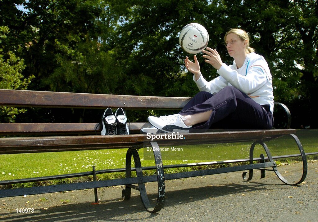 27 May 2004; The world's fastest growing sport - lifestyle brand, Puma, announced that it has added to its portfolio of contracted GAA players by signing exclusive sponsorship agreements with four more of the most high-profile names in Gaelic Games. The newly signed players are Sean Cavanagh, Tyrone, Ross Munnelly, Laois, Cora Staunton, Mayo and Oisin McConville, Armagh. At a photocall in Dublin at the announcement is Mayo footballer Cora Staunton. Picture credit; Brendan Moran / SPORTSFILE