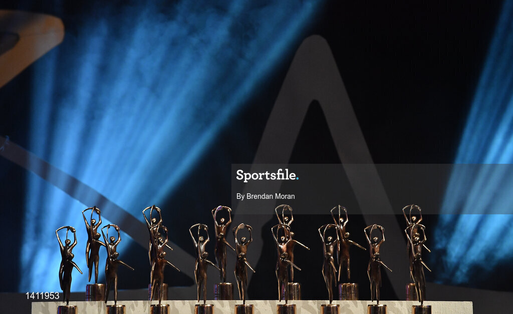 3 November 2017; A general view of All Star trophies during the PwC All Stars 2017 at the Convention Centre in Dublin. Photo by Brendan Moran/Sportsfile