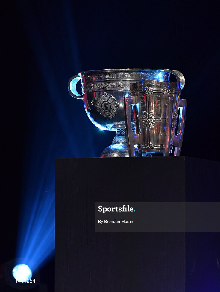 3 November 2017; A general view of the Sam Maguire and Liam MacCarthy cups during the PwC All Stars 2017 at the Convention Centre in Dublin. Photo by Brendan Moran/Sportsfile