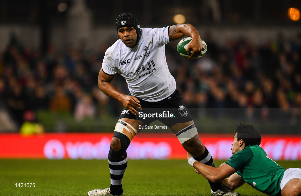 18 November 2017; Akapusi Qera of Fiji is tackled by Joey Carbery of Ireland during the Guinness Series International match between Ireland and Fiji at the Aviva Stadium in Dublin. Photo by Sam Barnes/Sportsfile