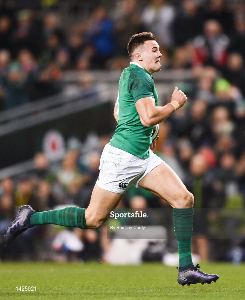 25 November 2017; Jacob Stockdale of Ireland during the Guinness Series International match between Ireland and Argentina at the Aviva Stadium in Dublin. Photo by Ramsey Cardy/Sportsfile