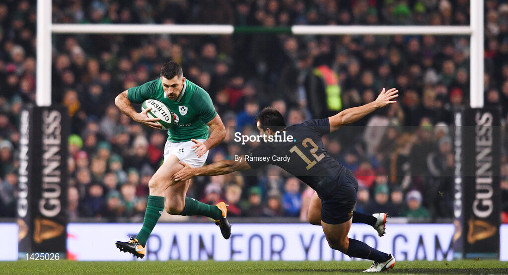 25 November 2017; Rob Kearney of Ireland is tackled by Santiago Gonzalez Iglesias of Argentina during the Guinness Series International match between Ireland and Argentina at the Aviva Stadium in Dublin. Photo by Ramsey Cardy/Sportsfile