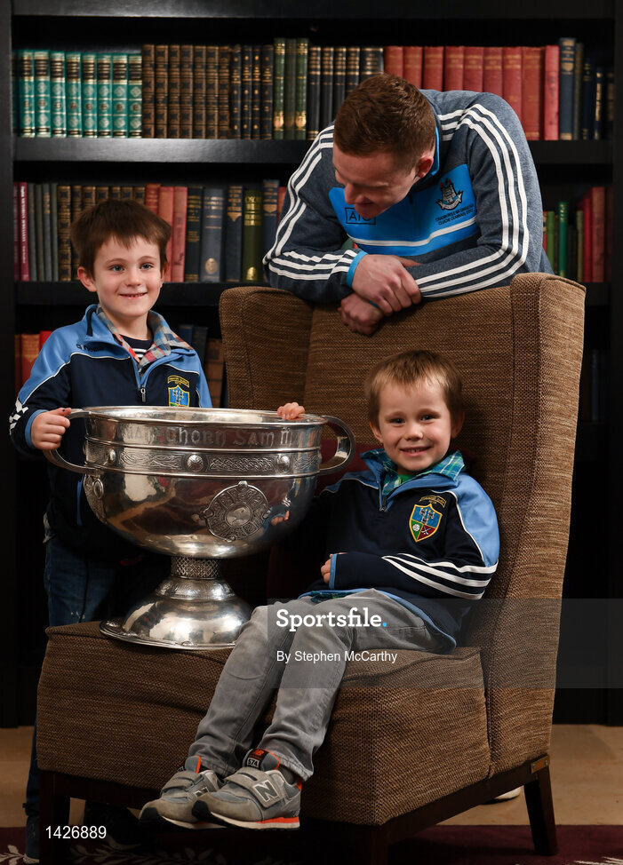 4 December 2017; In attendance at the launch of the A Season of Sundays 2017 at The Croke Park in Dublin are All-Ireland winning footballer Ciaran Kilkenny of Dublin with 7 year old Joe, left, and 5 year old Patrick McNamara, from Harolds Cross, Dublin. Photo by Stephen McCarthy/Sportsfile