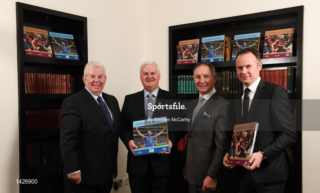 4 December 2017; In attendance at the launch of the A Season of Sundays 2017 at The Croke Park in Dublin are, from left, Sportsfile's Ray McManus, Uachtarán Chumann Lúthchleas Gael Aogán Ó Fearghail, All-Ireland winning Dublin football manager Jim Gavin and GAA Director of Communications Alan Milton. Photo by Stephen McCarthy/Sportsfile Uachtarán Chumann Lúthchleas Gael Aogán Ó Fearghail