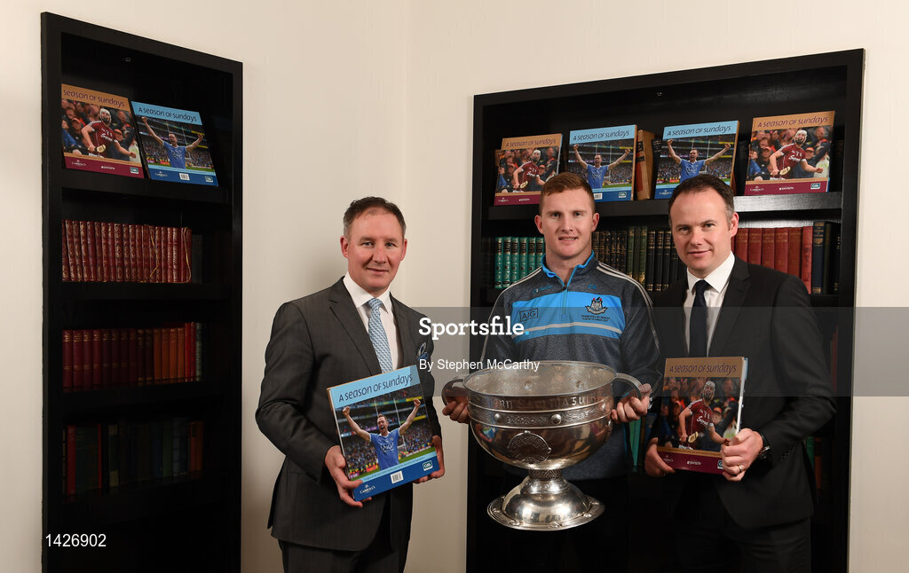 4 December 2017; In attendance at the launch of the A Season of Sundays 2017 at The Croke Park in Dublin are, from left, All-Ireland winning Dublin football manager Jim Gavin, All-Ireland winning footballer Ciaran Kilkenny of Dublin and GAA Director of Communications Alan Milton. Photo by Stephen McCarthy/Sportsfile