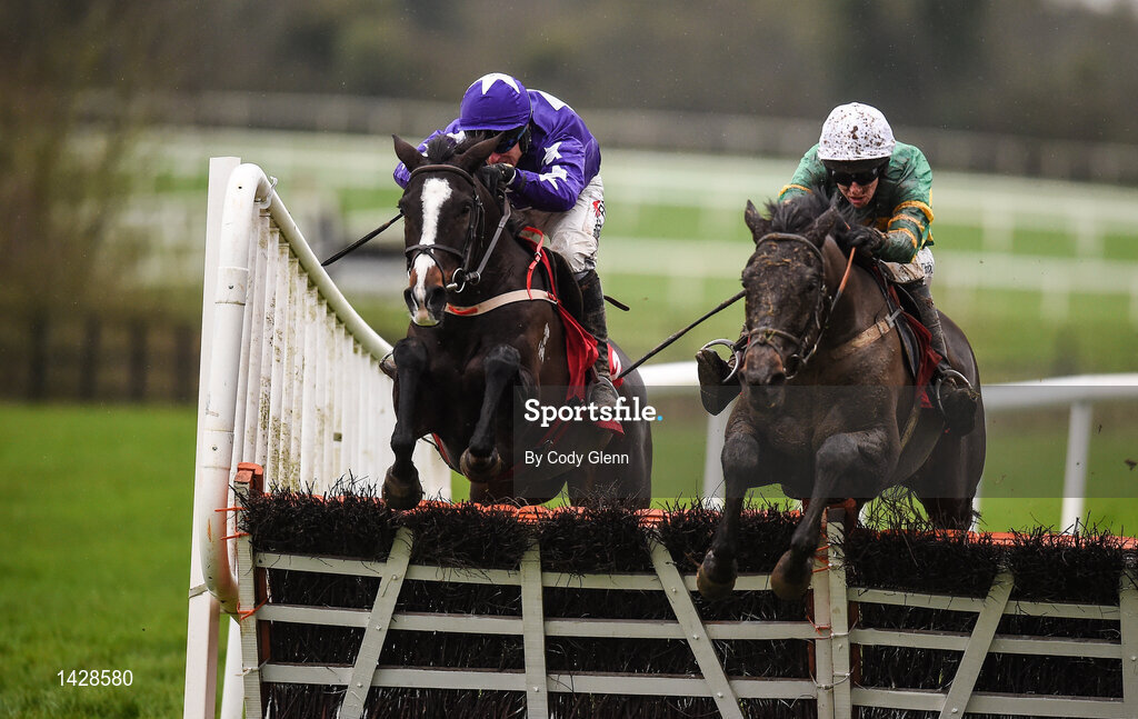 10 December 2017; Aa Bee See with Mark Walsh up jump the last ahead of Mary Frances with Robbie Power up on their way to winning the 3 For 2 Festival Tickets @ punchestown.com Handicap Hurdle at Punchestown Racecourse in Naas, Co Kildare. Photo by Cody Glenn/Sportsfile