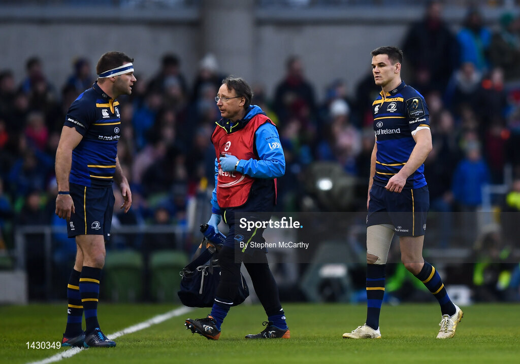 16 December 2017; Jonathan Sexton of Leinster leaves the pitch for a HIA during the European Rugby Champions Cup Pool 3 Round 4 match between Leinster and Exeter Chiefs at the Aviva Stadium in Dublin. Photo by Stephen McCarthy/Sportsfile