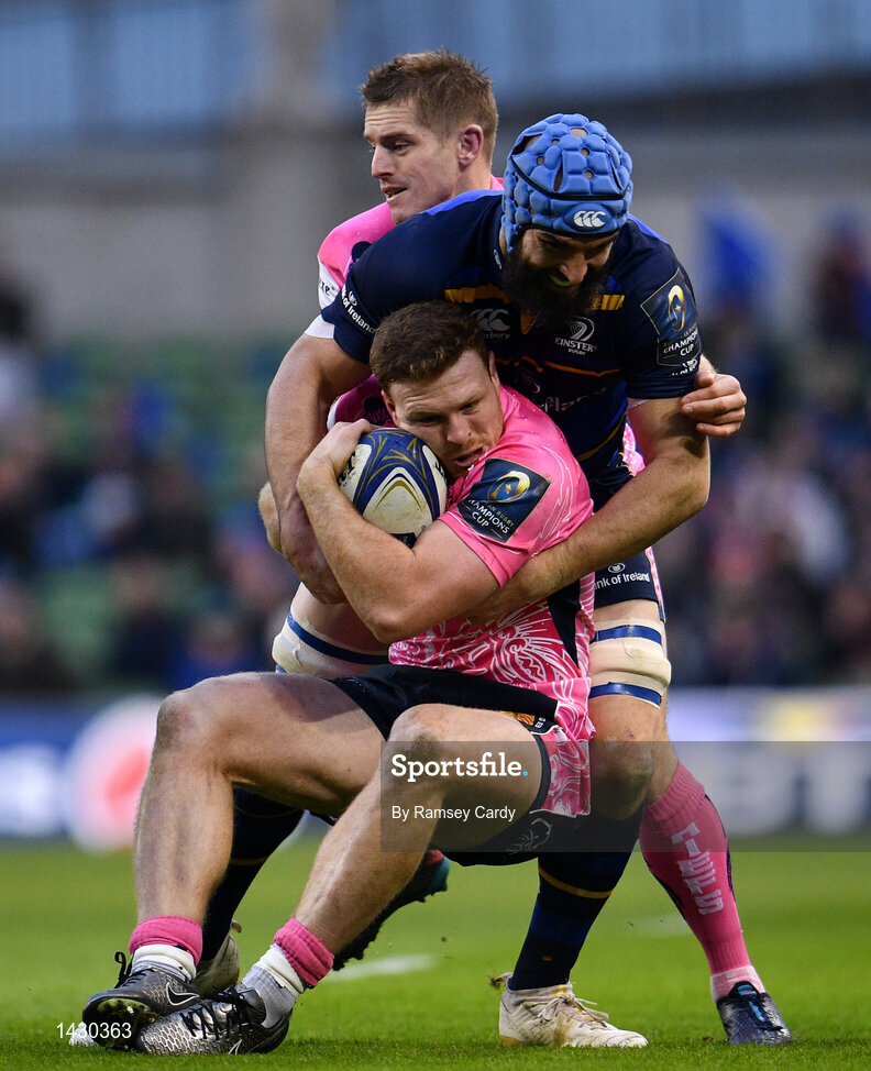 16 December 2017; Sam Simmonds of Exeter Chiefs is tackled by Scott Fardy of Leinster during the European Rugby Champions Cup Pool 3 Round 4 match between Leinster and Exeter Chiefs at the Aviva Stadium in Dublin. Photo by Ramsey Cardy/Sportsfile