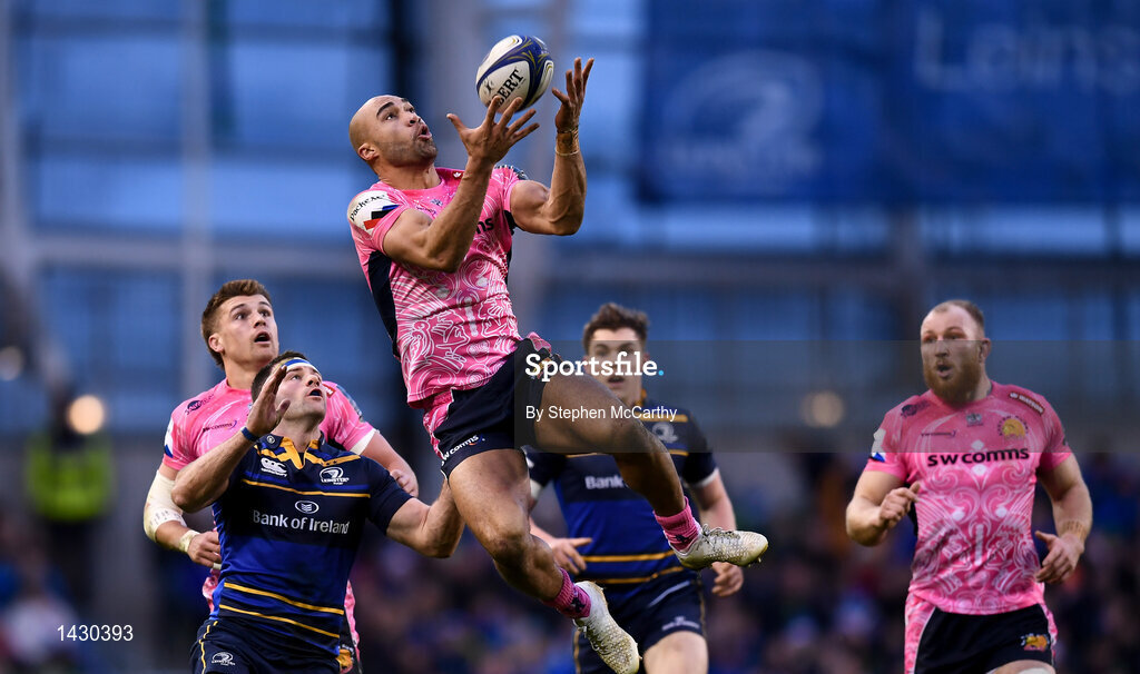 16 December 2017; Olly Woodburn of Exeter Chiefs in action against Fergus McFadden of Leinster during the European Rugby Champions Cup Pool 3 Round 4 match between Leinster and Exeter Chiefs at the Aviva Stadium in Dublin. Photo by Stephen McCarthy/Sportsfile