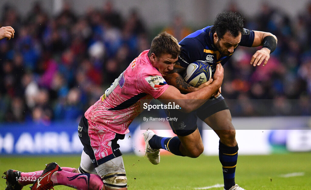 16 December 2017; Isa Nacewa of Leinster is tackled by Sam Skinner of Exeter Chiefs during the European Rugby Champions Cup Pool 3 Round 4 match between Leinster and Exeter Chiefs at the Aviva Stadium in Dublin. Photo by Ramsey Cardy/Sportsfile