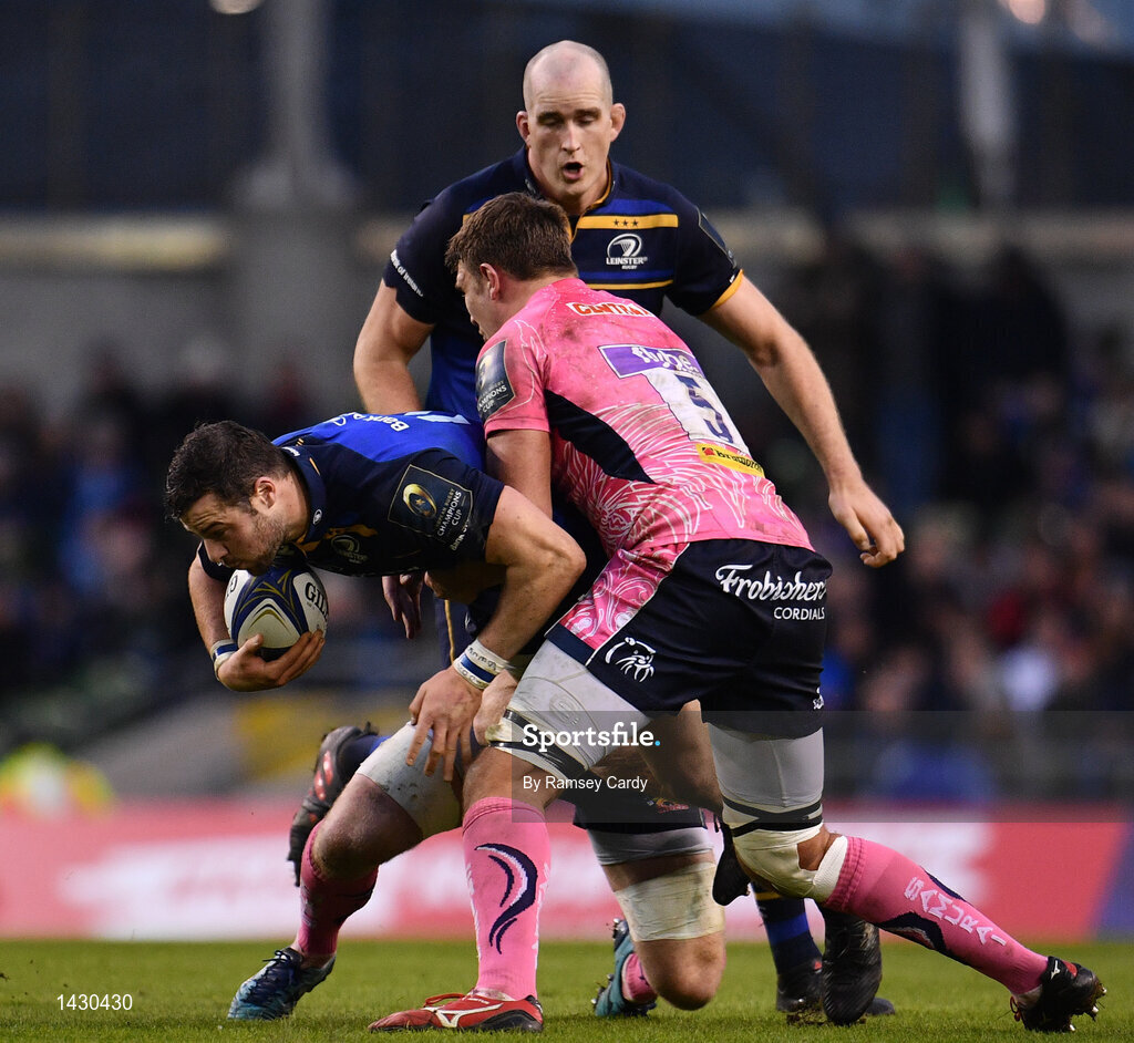 16 December 2017; Robbie Henshaw of Leinster is tackled by Sam Skinner of Exeter Chiefs during the European Rugby Champions Cup Pool 3 Round 4 match between Leinster and Exeter Chiefs at the Aviva Stadium in Dublin. Photo by Ramsey Cardy/Sportsfile