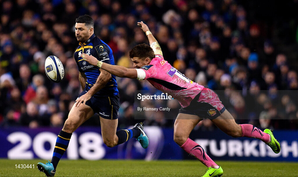 16 December 2017; Rob Kearney of Leinster in action against Henry Slade of Exeter Chiefs during the European Rugby Champions Cup Pool 3 Round 4 match between Leinster and Exeter Chiefs at the Aviva Stadium in Dublin. Photo by Ramsey Cardy/Sportsfile