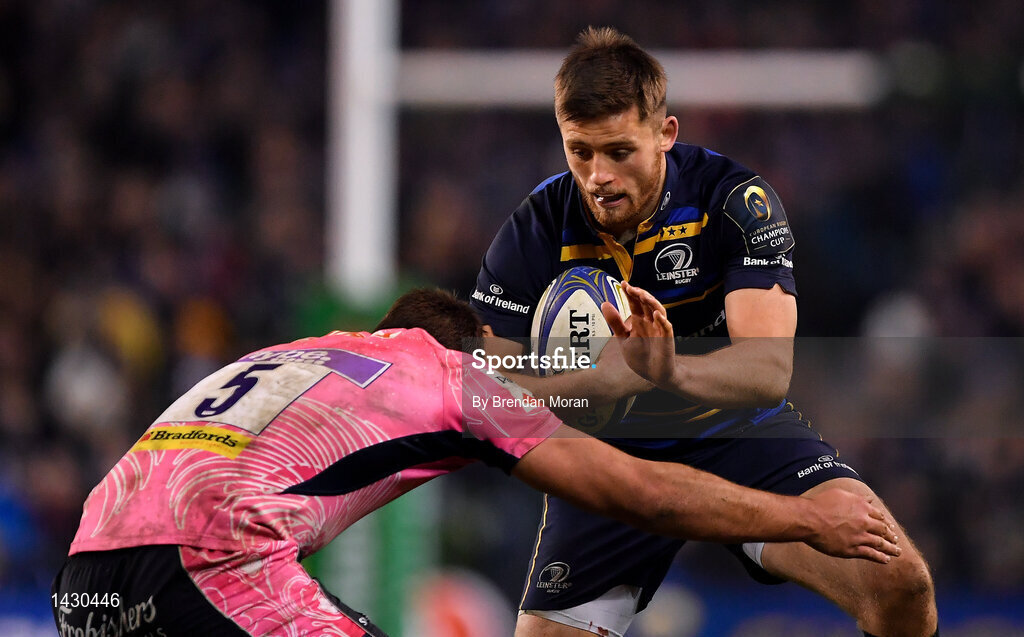 16 December 2017; Ross Byrne of Leinster is tackled by Sam Skinner of Exeter Chiefs during the European Rugby Champions Cup Pool 3 Round 4 match between Leinster and Exeter Chiefs at the Aviva Stadium in Dublin. Photo by Brendan Moran/Sportsfile