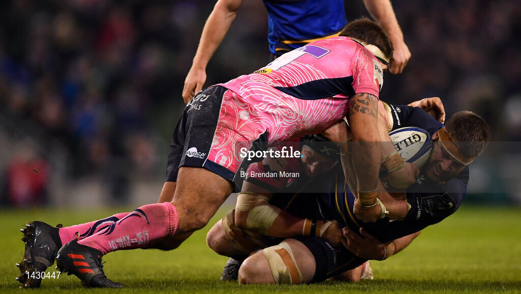 16 December 2017; Sean O'Brien of Leinster is tackled by Ben Moon of Exeter Chiefs during the European Rugby Champions Cup Pool 3 Round 4 match between Leinster and Exeter Chiefs at the Aviva Stadium in Dublin. Photo by Brendan Moran/Sportsfile