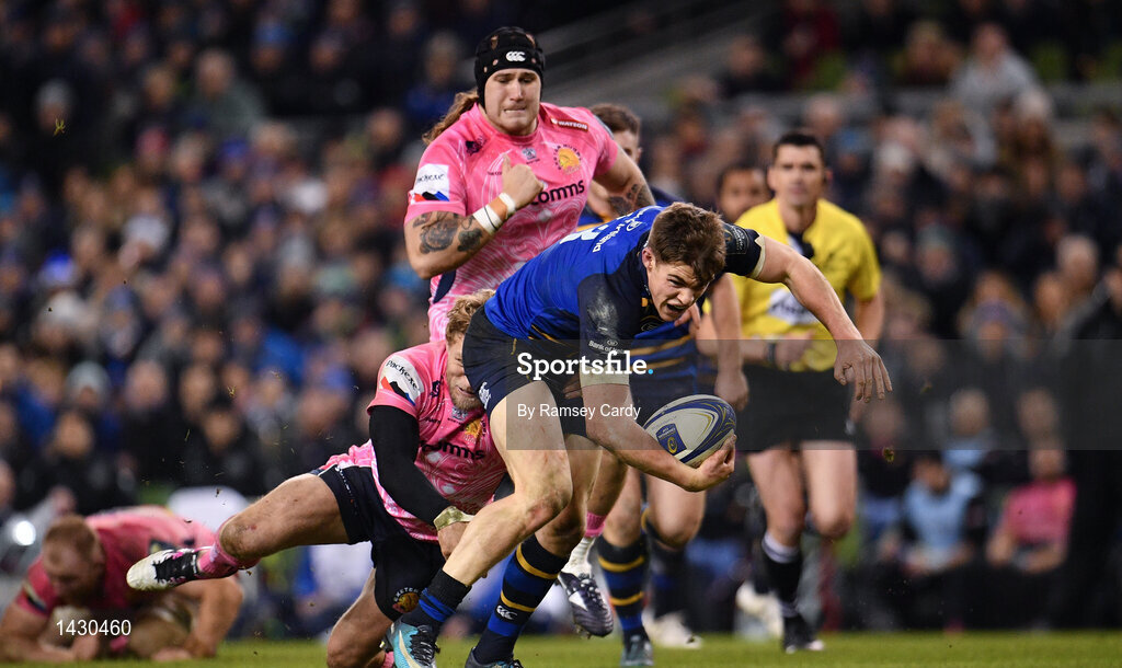 16 December 2017; Garry Ringrose of Leinster is tackled by Lachlan Turner of Exeter Chiefs during the European Rugby Champions Cup Pool 3 Round 4 match between Leinster and Exeter Chiefs at the Aviva Stadium in Dublin. Photo by Ramsey Cardy/Sportsfile