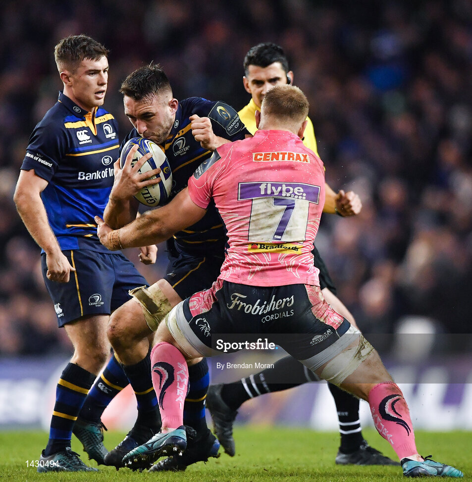 16 December 2017; Jack Conan of Leinster is tackled by Matt Kvesic of Exeter Chiefs during the European Rugby Champions Cup Pool 3 Round 4 match between Leinster and Exeter Chiefs at the Aviva Stadium in Dublin. Photo by Brendan Moran/Sportsfile