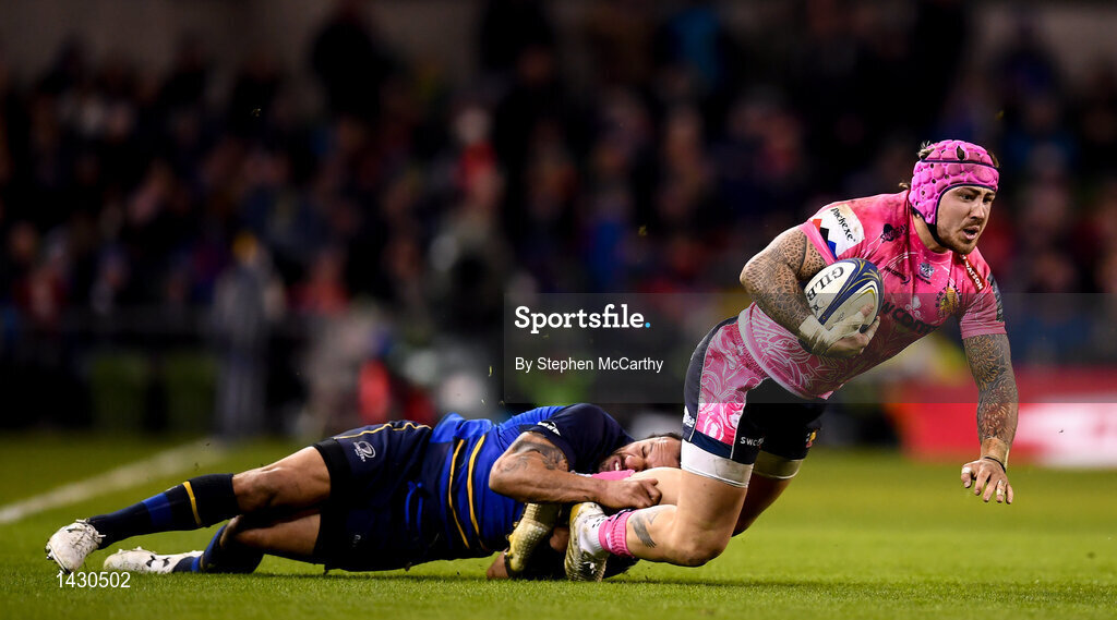 16 December 2017; Jack Nowell of Exeter Chiefs is tackled by Isa Nacewa of Leinster during the European Rugby Champions Cup Pool 3 Round 4 match between Leinster and Exeter Chiefs at the Aviva Stadium in Dublin. Photo by Stephen McCarthy/Sportsfile