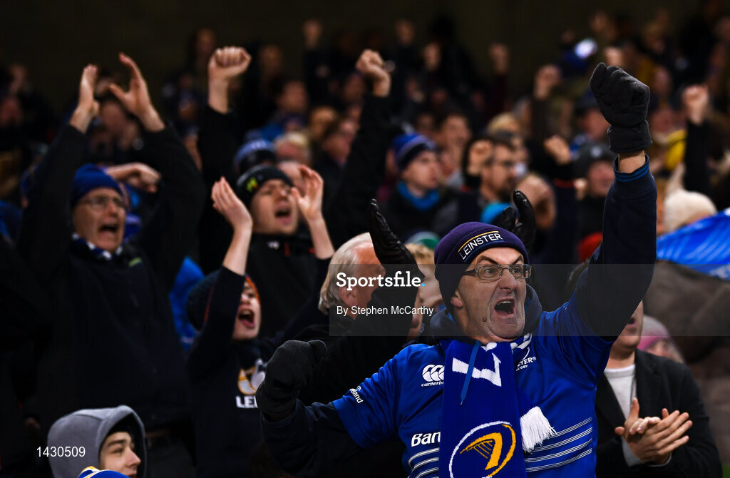 16 December 2017; Leinster supporters celeberate a try during the European Rugby Champions Cup Pool 3 Round 4 match between Leinster and Exeter Chiefs at the Aviva Stadium in Dublin. Photo by Stephen McCarthy/Sportsfile