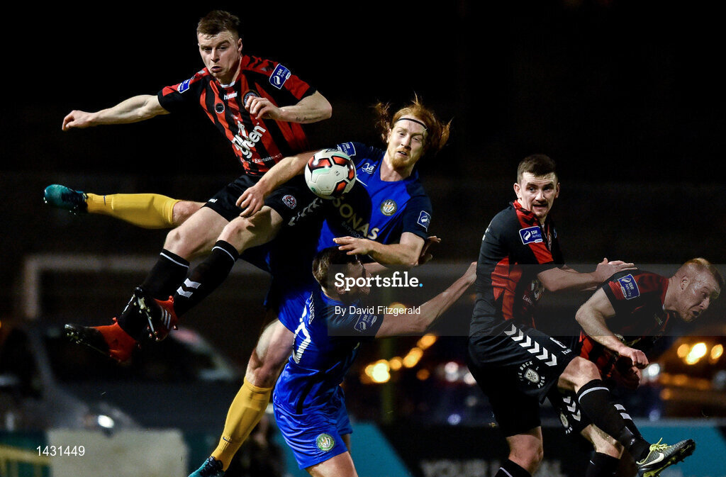 10 March 2017; Hugh Douglas of Bray Wanderers competes with Jamie Doyle of Bohemians for a high ball during the SSE Airtricity League Premier Division match between Bohemians and Bray Wanderers at Dalymount Park in Dublin. Photo by David Fitzgerald/Sportsfile
