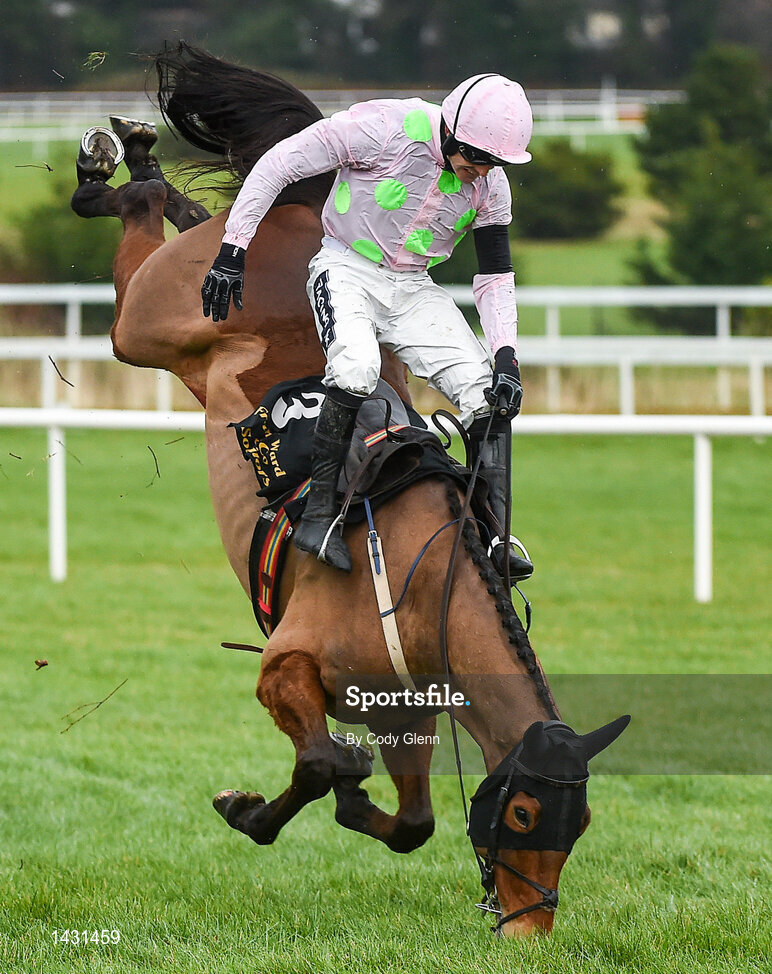 29 January 2017; Royal Caviar, with Ruby Walsh up, fall over the last while leading the field, in the Frank Ward Solicitors Arkle Novice Steeplechase during the Leopardstown Races at Leopardstown Racecourse in Dublin. Photo by Cody Glenn/Sportsfile