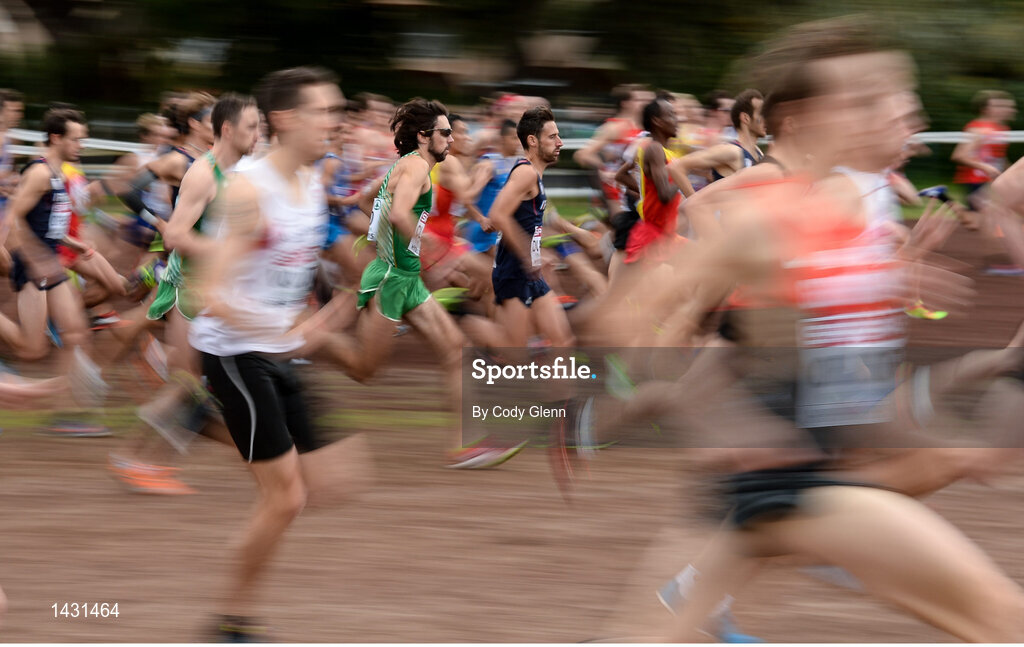 13 December 2015; Ireland's Mick Clohisey, centre, leads the Ireland Senior Men's team out of the start. SPAR European Cross Country Championships Hyeres 2015. Paray Le Monial, France. Picture credit: Cody Glenn / SPORTSFILE