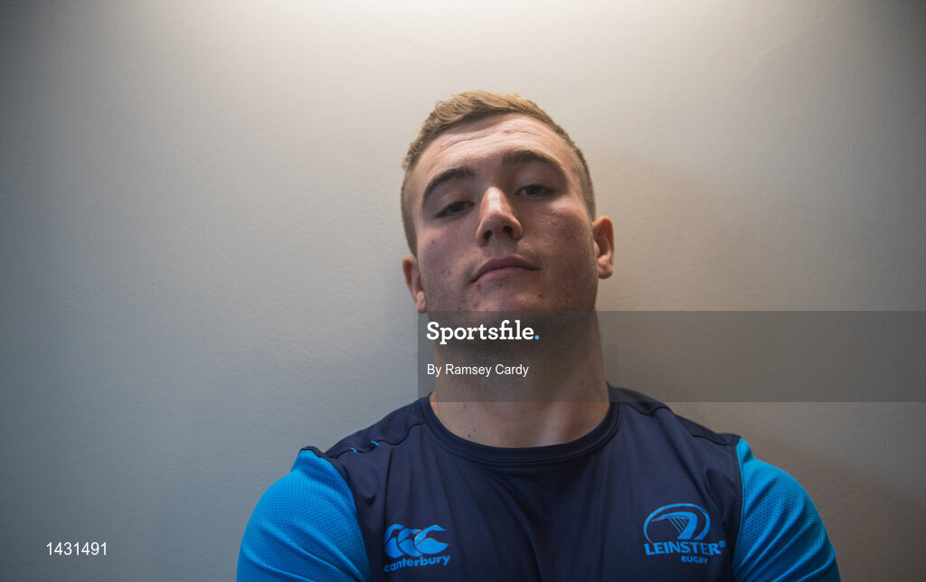 19 December 2017; Jordan Larmour poses for a portrait following a Leinster rugby press conference at Leinster Rugby Headquarters in Dublin. Photo by Ramsey Cardy/Sportsfile