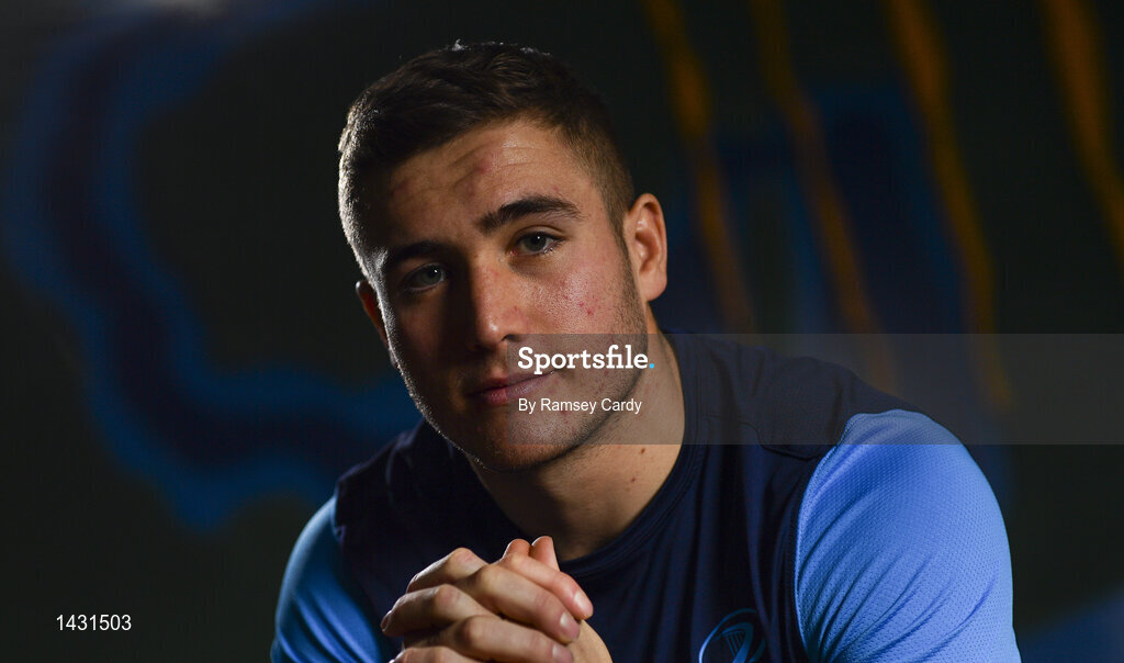 19 December 2017; Jordan Larmour poses for a portrait following a Leinster rugby press conference at Leinster Rugby Headquarters in Dublin. Photo by Ramsey Cardy/Sportsfile