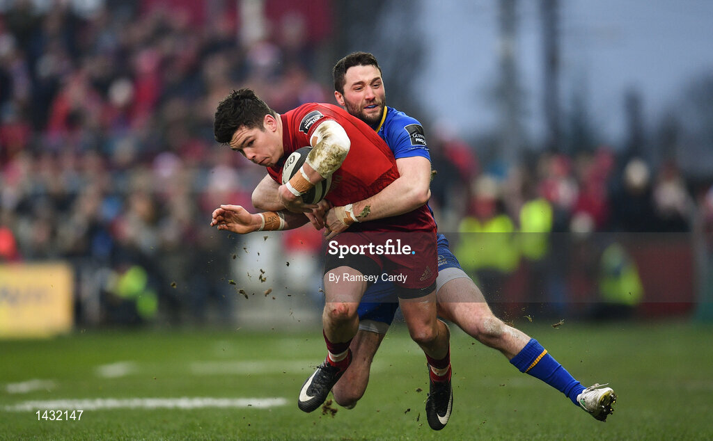 26 December 2017; Alex Wootton of Munster is tackled by Barry Daly of Leinster during the Guinness PRO14 Round 11 match between Munster and Leinster at Thomond Park in Limerick. Photo by Ramsey Cardy/Sportsfile