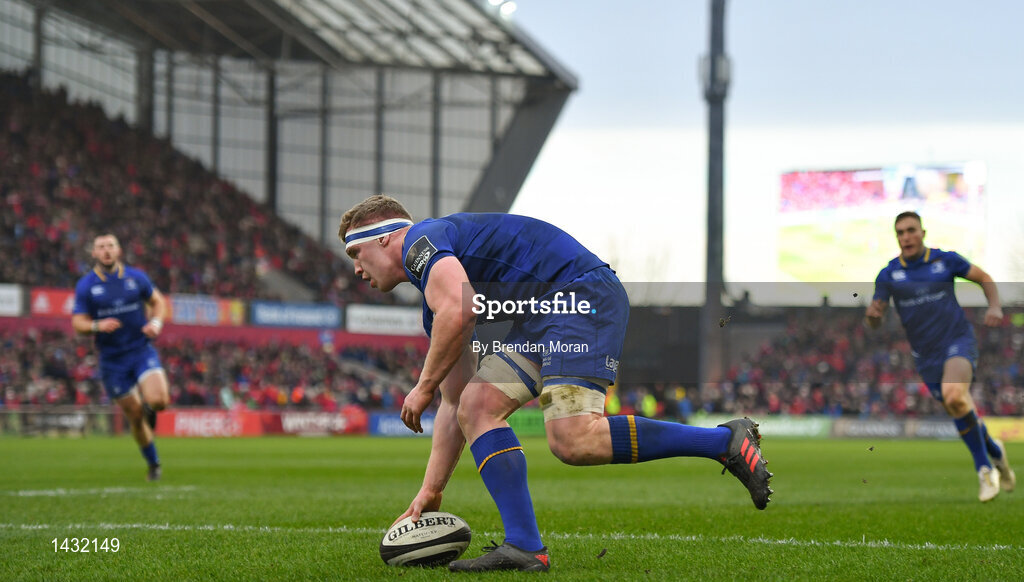 26 December 2017; Dan Leavy of Leinster scores his side's first try during the Guinness PRO14 Round 11 match between Munster and Leinster at Thomond Park in Limerick. Photo by Brendan Moran/Sportsfile