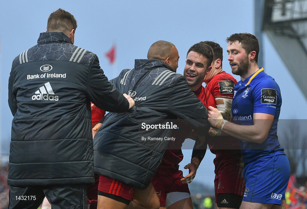 26 December 2017; Conor Murray of Munster celebrates with team-mates after scoring his side's first try during the Guinness PRO14 Round 11 match between Munster and Leinster at Thomond Park in Limerick. Photo by Ramsey Cardy/Sportsfile