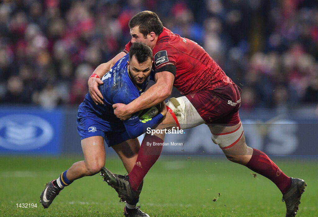 26 December 2017; Jamison Gibson-Park of Leinster is tackled by CJ Stander of Munster during the Guinness PRO14 Round 11 match between Munster and Leinster at Thomond Park in Limerick. Photo by Brendan Moran/Sportsfile